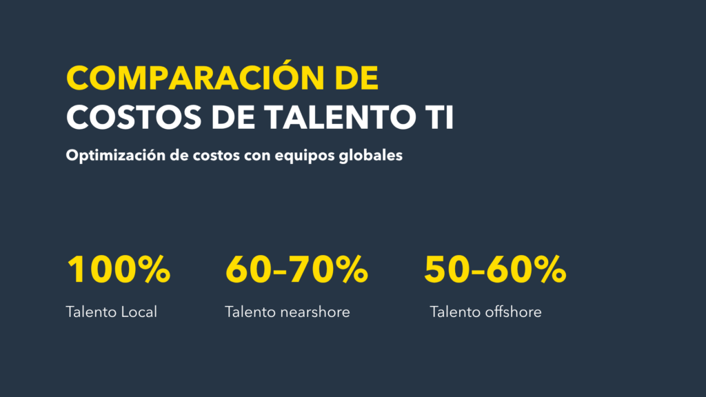 - El costo del talento local puede ser hasta 40% más alto en mercados saturados