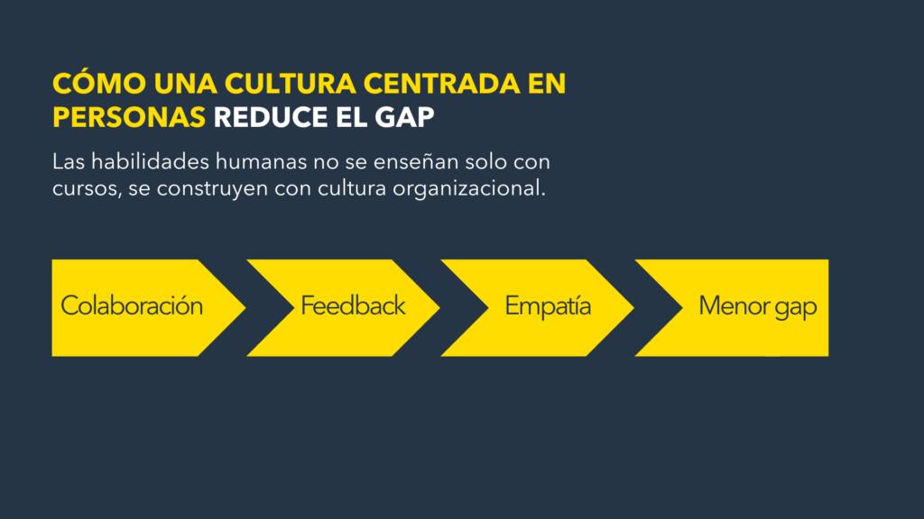 De hecho, un equipo puede ser técnicamente sólido, pero si no logra colaborar o adaptarse, su desempeño se ve limitado. Por eso, cerrar este gap se vuelve una prioridad estratégica.