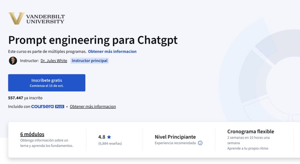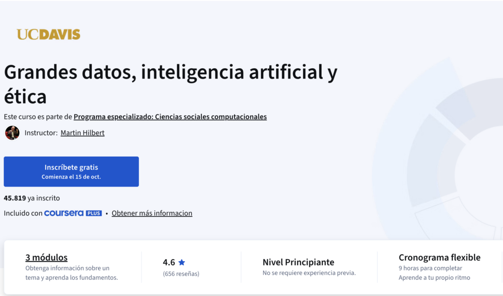 💡 Tip: En Coursera, haz clic en “Enroll for free” y selecciona “Audit the course” para acceder a los materiales sin costo.