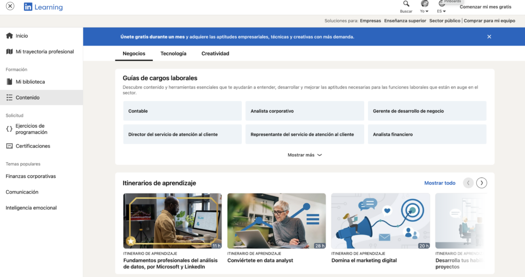 LinkedIn Learning ofrece cursos prácticos y enfocados en aplicar IA generativa en entornos profesionales.